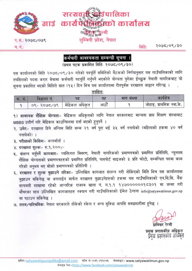» कर्मचारी आवश्यकता सम्बन्धी सूचना ।