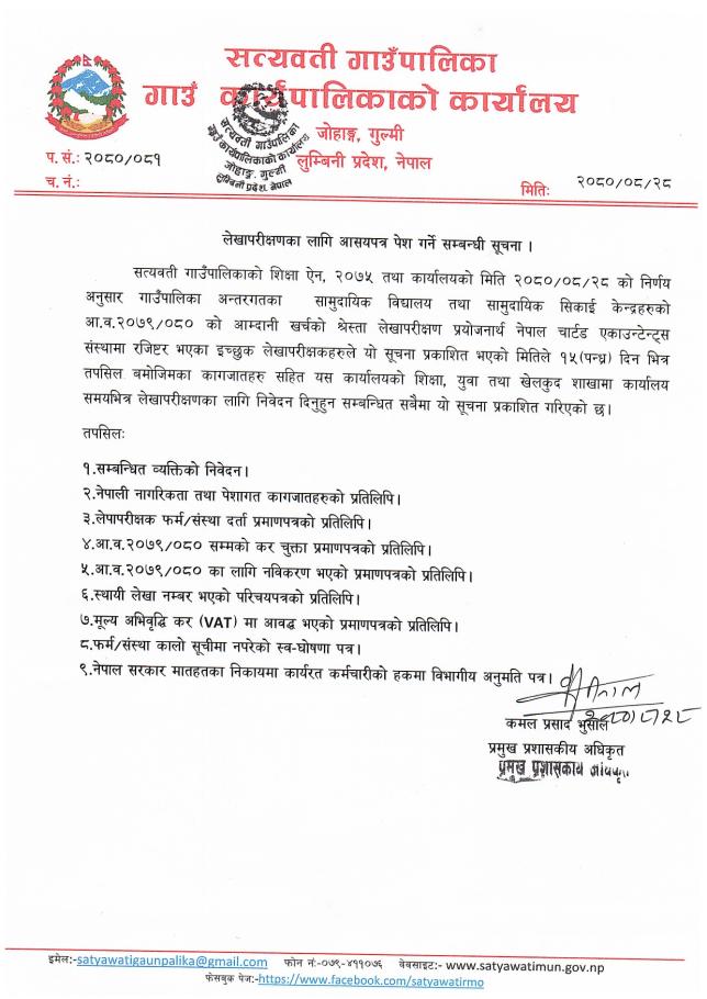 लेखापरीक्षणका लागि आसयपत्र पेश गर्ने सम्बन्धी सूचना ।